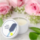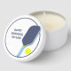 Throw the perfect court-side birthday party. These mini candle tins make fun party favors. They're ready to be personalized with your own custom message in navy blue letters which appears beside my realistic style illustration of a pickleball paddle and ball in navy blue, light blue and bright yellow.