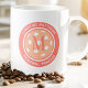 Trendy peach & orange girly giant coffee mug design features two lines of customizable text for "Pickleball Princess" or custom saying of choice and name or custom text in a timeless modern font arched over & under an image of a pickleball in matching pink. Add one or two intials in the center of the design over the image of the ball. Larger initial combos may need to be sized down for spacing. The design repeats itself on the opposite side. Contact me for questions or custom color requests.
