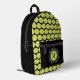 Cute backpack design features two lines of customizable text for "PICKLEBALL STAR - DILL WITH IT" or a custom saying of choice and name or custom text in a timeless modern font arched over & under an image of a pickleball in light colorful green. The background on the front and sides is classic black. Add one or two initials in the center of the design over the image of the ball. Larger initial combos may need to be sized down for spacing. ALL colors in this design are customizable including the holes in the ball! Contact me for questions or custom color requests.
