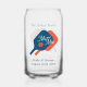 Pickleball wedding party can glass with chic logo. Double sided print with personalized names of bride and groom. Custom drink glass with sporty theme for pickleball lovers. Part of unusual theme collection with party supplies and stationery.