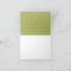 A cute pickles and ice cream baby shower thank you card with a short waffle cone bowl with vanilla ice cream, chocolate syrup, nuts, pickle and a cherry on top. A pink and white striped background on the front and a green and white heart polka dot pattern on the inside top. Artwork © Chrissy H. Studios, LLC. All rights reserved.