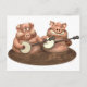 Two pigs playing banjos in the mud