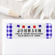 This design will be the perfect finishing touch to your summer barbecue, pool party, or other summer celebration invitation envelopes! They feature a blue-checkered tablecloth background behind a sky blue square and tiny little red, white, and blue banner. And your address, of course, in simple easy-to-read typography!