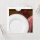 This focuses on the plate to give more white space for you to write on--other versions of this are available that feature more items; e.g. more details of the water and ice glass, the juice or wine glass, and the rolled napkin; every detail including the shading was done by hand.