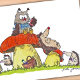 Owly and his freinds having a picnic on giant mushrooms.