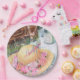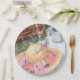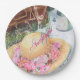 Romantic picnic in the park with sparkling water and glasses, a white lace tablecloth, a brown basket and a beautiful floral laced summer hat. Flowers are a combination of pinks, reds, purples. Custom personalized monogram party paper plates for all occasions. Watercolor design image originates from the designers collection. Enjoy coordinating your party ensemble to express your own Theme. If you want something more particular please contact me at sue.chorney@shaw.ca.