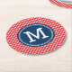 Monogrammed round coasters featuring a stylish picnic red gingham pattern. Decorate your home with these country chic coasters or use it for your country, western, picnic or BBQ theme events.