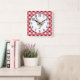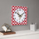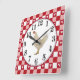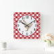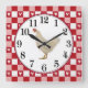 10.75” x 10.75” acrylic wall clock with an image of a red, pink and white checkerboard accented with white chickens and roosters, reminiscent of a country picnic tablecloth. Easy-to-read round white clock face has red border and image of a leghorn chicken. See the entire This & That Clock collection in the HOME section.
