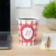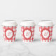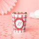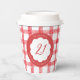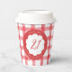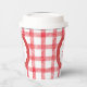 Birthday Picnic Summer Spring Red Gingham Scallops Birthday Paper Cups feature a classic red gingham repeat pattern paired with a white scalloped center and custom personalized text for a clean, timeless celebration look.