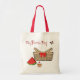 Fun picnic canvas bag, with cartoon pictures of a picnic basket with a red bow, a cute butterfly, watermelon slice, and a yummy cupcake. Red text reads, My Picnic Bag is fully customizable to read anything you want. Fill with goodies for a wonderful gift idea.
