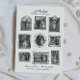 This hand drawn save the date features a collage of whimsical, hand drawn picture frames in an arrangement that is reminiscent of a gallery wall. The design also features the text written in a cute, handwritten style and includes placeholders to add your own photos. The back of the card includes an editable placeholder to indicate your wedding website URL, which can also be deleted if the URL is not yet available. Comes in a creamy white shade.