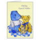 This cheerful still life teddy bear picture is painted in watercolor. The three cute teddies are sitting on a blue and white check picnic cloth. The three little bears are from my own teddy bear collection, the blue bears name is "Charlie bear" the bigger yellow bear is called "small Barbara Bear" and the little teddy.... well...I didn’t have a name for him, but I do remember that he only had one eye. The cute still life teddy bear watercolor painting is a unique picture and definitely stands out. If you're looking for a unique gift for teddy lovers from nought to one hundred then this item will defiantly do the job. This product can be customized with your own text.