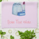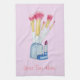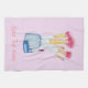 The original still life illustration on this customizable kitchen towel is an image of five make up brushes in a holder really stands out on this towel. Just in below the make-up brushes and holder there’s a red lipstick just waiting to be applied using the lip brush. The brushes are a pretty dark pinkish colour with clear transparent handles and the little pot is a greyish blue colour. The original little still life painting is painted in water-colour and below the little still life image you can personalize the towel with your own text. This unique towel will make an original make-up artists towel.