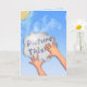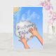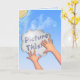 Encourage him/her to reach for the stars w/this thought provoking card's original digital painting of a light-skinned child's hands holding up a cloud shaped sign w/ the words: "Picture This" against a sunny blue sky. Inside text: "Whatever you can see & believe, You can achieve. (I believe in you)".