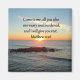 Come to me, all you who are weary and burdened, and I will give you rest. Be a blessing to others with this stunning sunrise over the ocean photo design with the glorious scripture verse Matthew 11:28 on Tees and Gifts. This lovely Matthew 11:28 design will make a splendid gift when blessing that someone special that loves Jesus and reading the bible. This beautiful Matthew 11:28 scripture verse photo will look beautiful wearing on a Tee or decorating your home with one of our charming home decor products. Share with all that you believe in Jesus Christ with all your heart, soul, mind, and strength.
