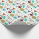 Wrapping paper featuring a pie themed pattern with illustrations of a stove, fruit, kitchen utensils, and pies.