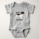 A fun gift for the new baby! This personalized baby bodysuit features a piebald dachshund with a place for your dog's name.