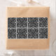 This design was created by duplicating and flipping a mirrored pattern of geometric shapes (primarily triangles) in various shades of grey and black fitted together resembling a mosaic or a work of stain-glass over this original image. The images was then laid out in a grid fashion with no distinct border other than the one preexisting in the design.
