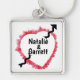 Keep a special person with you wherever your keys go. Personalize this artsy key ring featuring a red dry brushed frame and heart outline pierced by an arrow that offers room for names or initials. Fill in the template fields to change the text or click customize to select a typeface style, size, and color you prefer. In customize, you can also select a background color other than white.