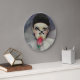 10.75” round acrylic wall clock with a vintage image of the sad clown Pierrot on gray holding a pink rose bud with a tear in her eye.