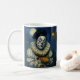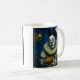 Melancholy Pierrot clown illustration in moonlit street scene on ceramic mug, ideal for collectors, art lovers, and circus fans.