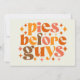 This fun and cheeky fall-themed design features the playful phrase "Pies Before Guys" in a bold, retro-inspired font. The text is arranged in a compact, stacked layout with each word in a different font style, creating a dynamic and eye-catching composition. The color palette includes warm autumnal hues like deep oranges, rich browns, and golden yellows, perfectly capturing the cozy vibes of the season.