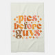 This fun and cheeky fall-themed design features the playful phrase "Pies Before Guys" in a bold, retro-inspired font. The text is arranged in a compact, stacked layout with each word in a different font style, creating a dynamic and eye-catching composition. The color palette includes warm autumnal hues like deep oranges, rich browns, and golden yellows, perfectly capturing the cozy vibes of the season.