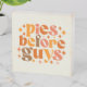 This fun and cheeky fall-themed design features the playful phrase "Pies Before Guys" in a bold, retro-inspired font. The text is arranged in a compact, stacked layout with each word in a different font style, creating a dynamic and eye-catching composition. The color palette includes warm autumnal hues like deep oranges, rich browns, and golden yellows, perfectly capturing the cozy vibes of the season.