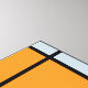 This oil on canvas from 1920 shows a composition with black, red, gray, yellow (orange), and blue blocks in a style that came to be known as De Stijl or Neo-Plasticism.
