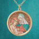 Between The Descent from the Cross and The Entombment, Christ was lamented… most especially by His mother. The term Pieta, derived from the Italian word for ‘pity’, is given to the third—and final--type of depiction of the grieving BVM. In a Pieta, Mary cradles the body of Jesus on her lap just as she had cradled him as a child. In a somewhat unusual departure from more familiar versions in sculpture or painting, Mary sits not on the ground at the foot of the cross but on a tomb (not visible in this detail). Tombs cut horizontally into cliff faces as in 1st century Palestine were unfamiliar to Western European artists of the Middle Ages. Gothic artists portrayed what they knew: stone sarcophagi. That the tomb as pictured would be too small for the figure of Christ is another hallmark of medieval art. It is emotion not accuracy that counts here: The scene captures an intimate moment between mother and son and evokes pity in the viewer. + Use the "Transfer this design" function to create matching bracelets, charms, rings, lapel pins, cufflinks, tie bars, and premium metal keychains! + Image Credit (SAU 23): Detail of an antique NeoGothic image of the Pieta from a holy card printed in chromolithography with gilt accents, and published by the Socièté de St. Augustin, Bruges, Belgium, last quarter of the 19th century. From the designer’s private collection of religious ephemera.