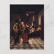 This Baroque genre masterpiece titled, Paying the Hostess is made by the famous painter, Pieter de Hooch using oil on canvas in 1658. The early work of de Hooch, like most young painters of his time, was mostly composed of scenes of soldiers in stables and taverns, though he used these to develop great skill in light, color, and perspective rather than to explore an interest in the subject matter.