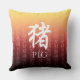 Pig 猪 Red Gold Chinese Zodiac Lunar Symbol Throw Pillow
