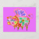 Postcard with a funny pig with wings inspired by Mexican alebrijes