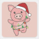 The pig at Christmas with fairy lights. Funny animals with gifts and snow for the holidays. A sweet Christmas greeting. Pigs are cute animals and perfect for Christmas.
