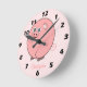 This pig design wall clock is a timekeeping device designed to hang on a wall, serving as both a functional tool and a decorative focal point for a room. Made from acrylic and features a pre-installed backside hanging slot for easy hanging and a non-ticking design. You can customise this wall clock with any text of your choice. Should you require any help with customising then contact us through the link on this page. Pig design wall clock