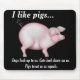 Fun illustration of a pink pig with a humorous message. Text says ... I like Pigs, Dogs look up to us. Cats look down on us. Pigs treat us as equals.
