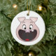 Lightweight, smooth, pure white ornament with nice sheen. Perfect size to be seen from across the room ... and to attract closer inspection! Price was great for ordering enough for the whole family! Clear, bold black design just as requested. Matches the order exactly. Just so nice!