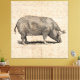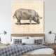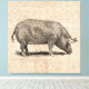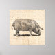 Pig Illustration Antique Art Script Paper Style Canvas Print
