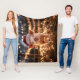 Fleece blanket featuring an adorable pig wearing a Santa hat and surrounded by Christmas twinkle lights.