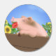 Pig in Pan holding rose cartoon illustration animal farm sunflower flower
