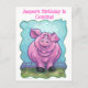 Animal Parade Pig Birthday Party personalized themed gifts, decorations, party favors, and much more created by ITD Animal Parade features our original art of a cute pig standing in a green, grassy field with a white fence and a blue textured sky inside a playful wavy green border painted by our talented kid's illustrator, Traci Van Wagoner. This whimsical farm animal from the front and back, complete with a cute curly pig tail, on many products is sure to bring a smile pig lovers of all ages. Throw a barnyard animal pink pig party for your kid today with our coordinating pig fun and whimsical gift and party ideas. Have a snorting good party! Oink!