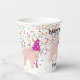 A cute illustration of a pig partying and having fun! Pig wearing a party hat and blowing party horn with confetti raining down on it. Let the celebrations begin! Perfect for anyone who loves funny animal illustrations. Ideal birthday party paper cup. Customize the occasion and name and make it your own.