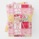 Pig Patchwork Floral Rustic Birthday Party Wrapping Paper. Adorable pink pig rustic country farm plaid floral pattern. www.SamAnnDesigns.com Birthday Wrapping Paper. Farm-themed kids' birthday party supplies. www.SamAnnDesigns.com