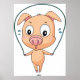 A pig jumping over a skipping rope having fun. This design looks really effective on this Poster