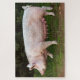 This challenging jigsaw puzzle features a funny photo of a nursing momma pig who clearly has been very busy. And now she's on the run--fleeing from her hungry offspring, no doubt.