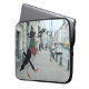 This Laptop sleeve features my cartoon style image of a dapper Pigeon wearing a hat, whistling a merry tune and carrying an umbrella, walking along an urban street.