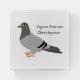 This pigeon design glass paperweight will a foam backing is heavy enough to hold down loose papers. It's primarily used to prevent papers from being moved by wind, drafts, or while being worked on. You can customise this glass paperweight with any text of your choice. Should you require any help with customising then contact us through the message link on this page. Pigeon design personalised glass paperweight