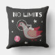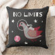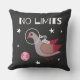 Cute tee shirt has pigeon floating in outer space with the earth and stars in the distance. Text says No Limits for an encouraging and inspirational message. Nice throw pillow for kids.