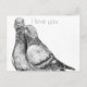 A beautifully detailed pencil sketch captures a tender moment between two pigeons, with one gently pecking the other on the cheek.
