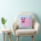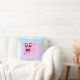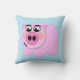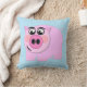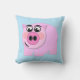 Pillow featuring pink pig on transparent background. Choose background color for thousands of different looks. Color shown is light blue.